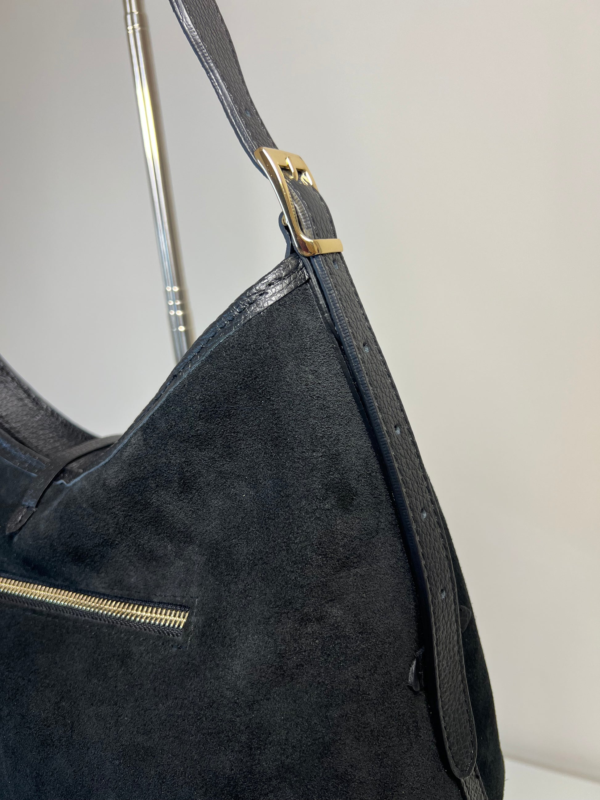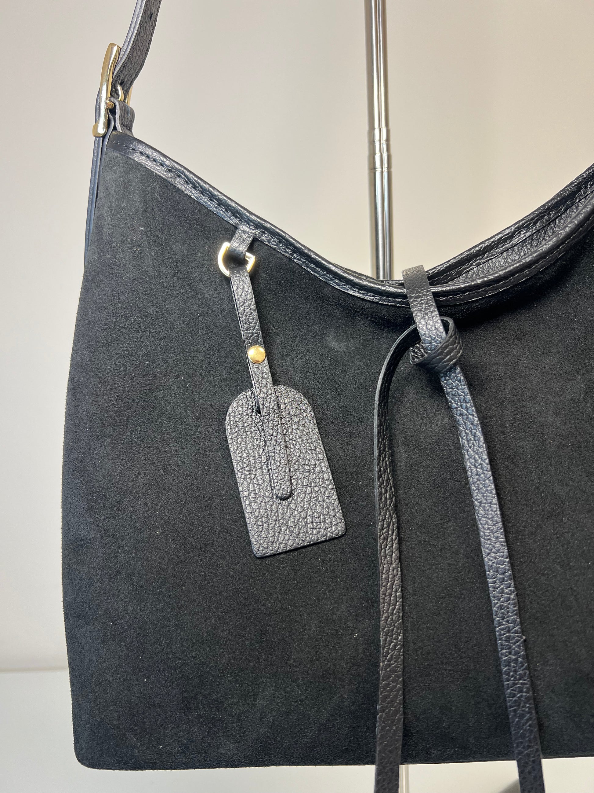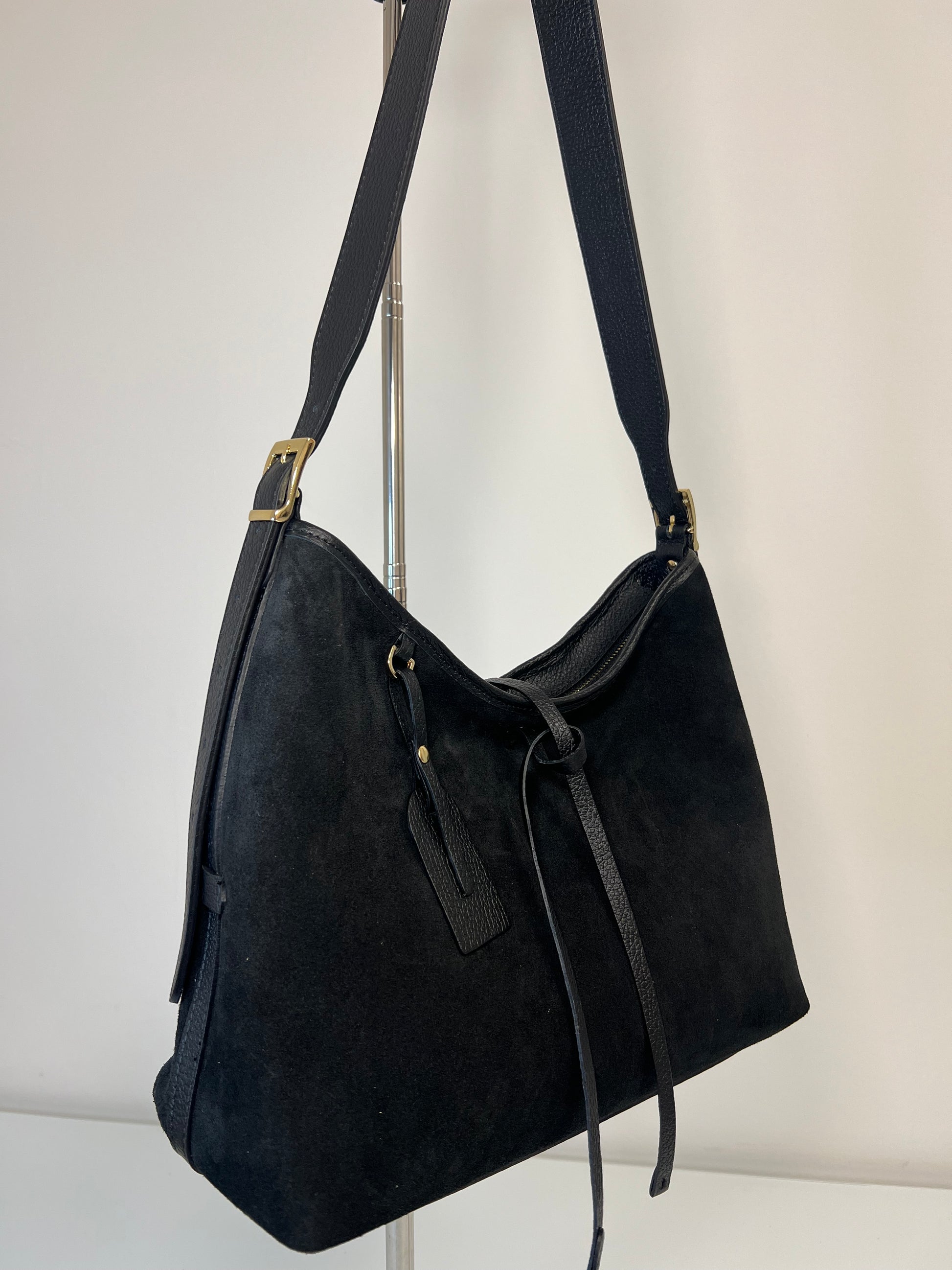 -Forma hobo: struttura ampia e flessibile che si adatta al corpo, ideale da portare comodamente a mano e a spalla grazie alla tracolla regolabile.
