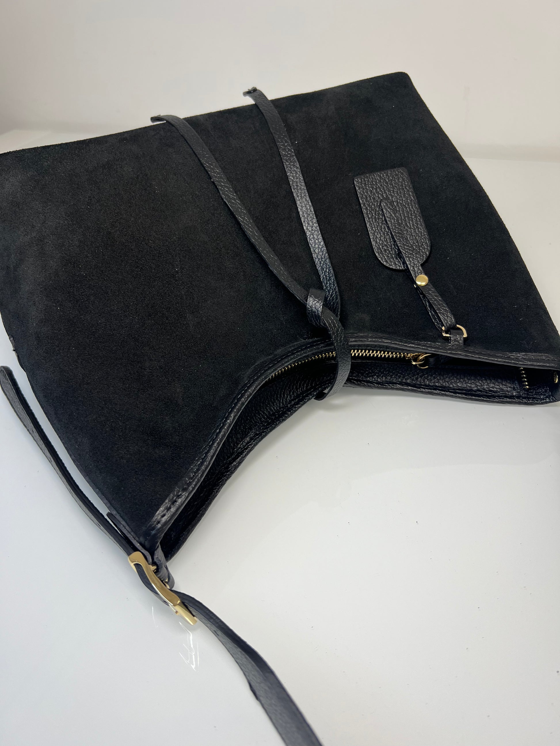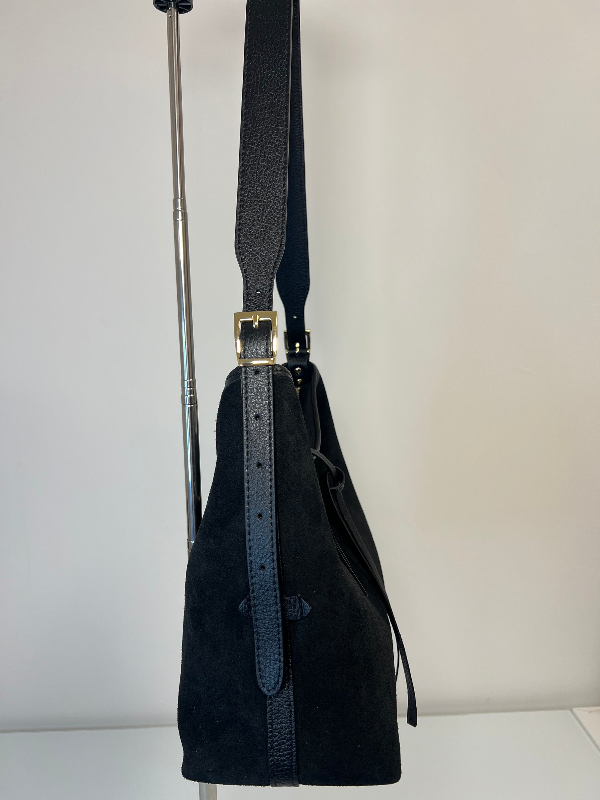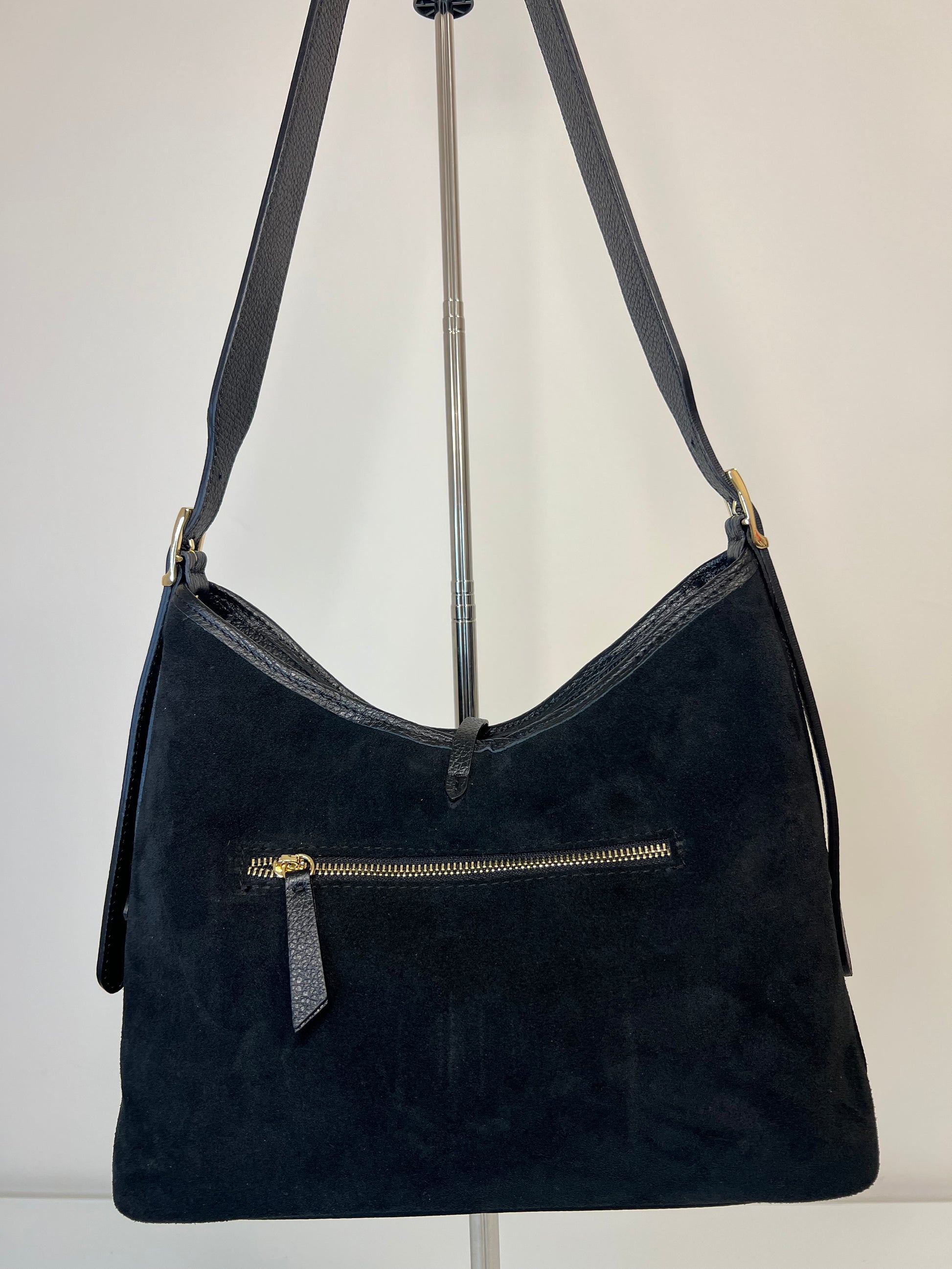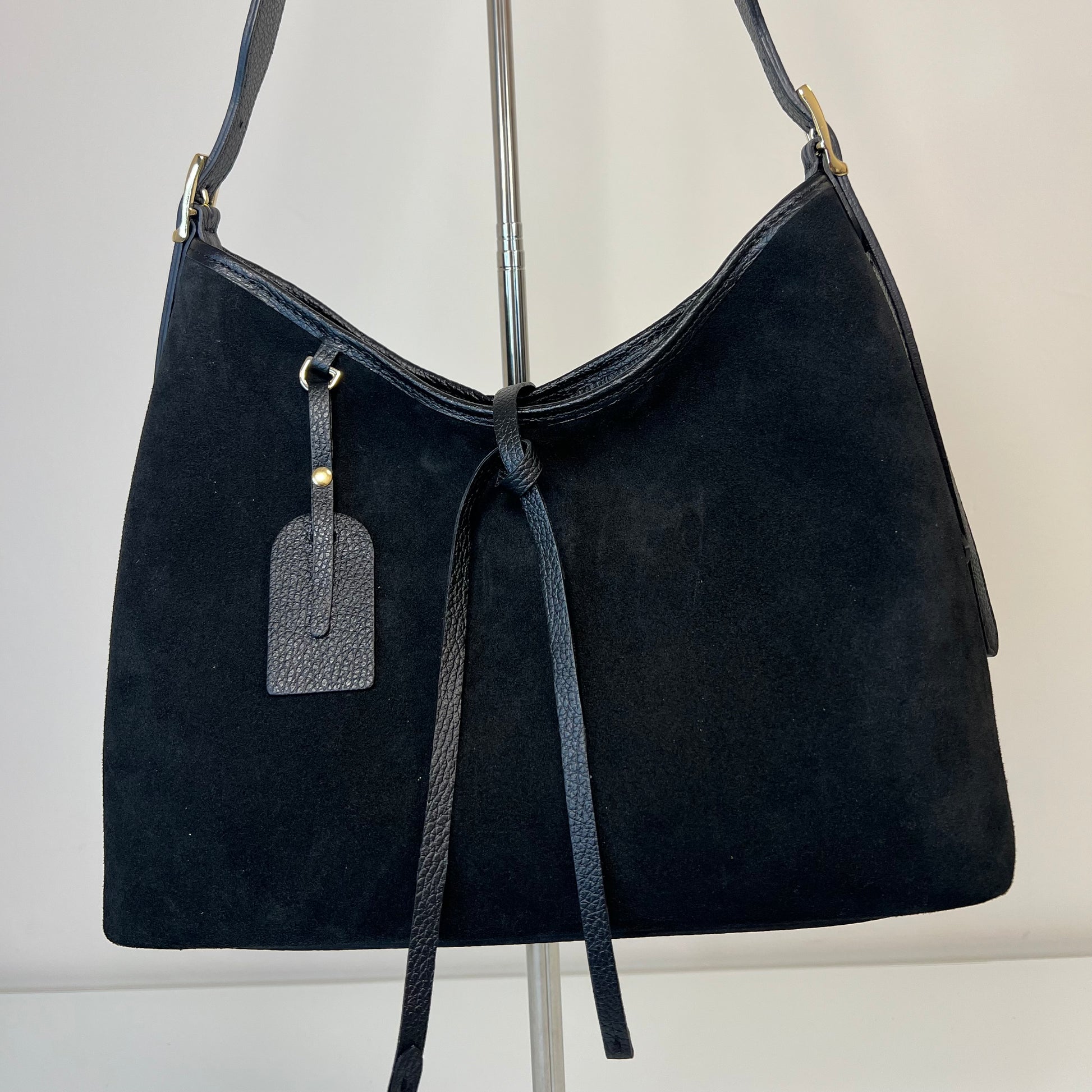 -Forma hobo: struttura ampia e flessibile che si adatta al corpo, ideale da portare comodamente a mano e a spalla grazie alla tracolla regolabile.