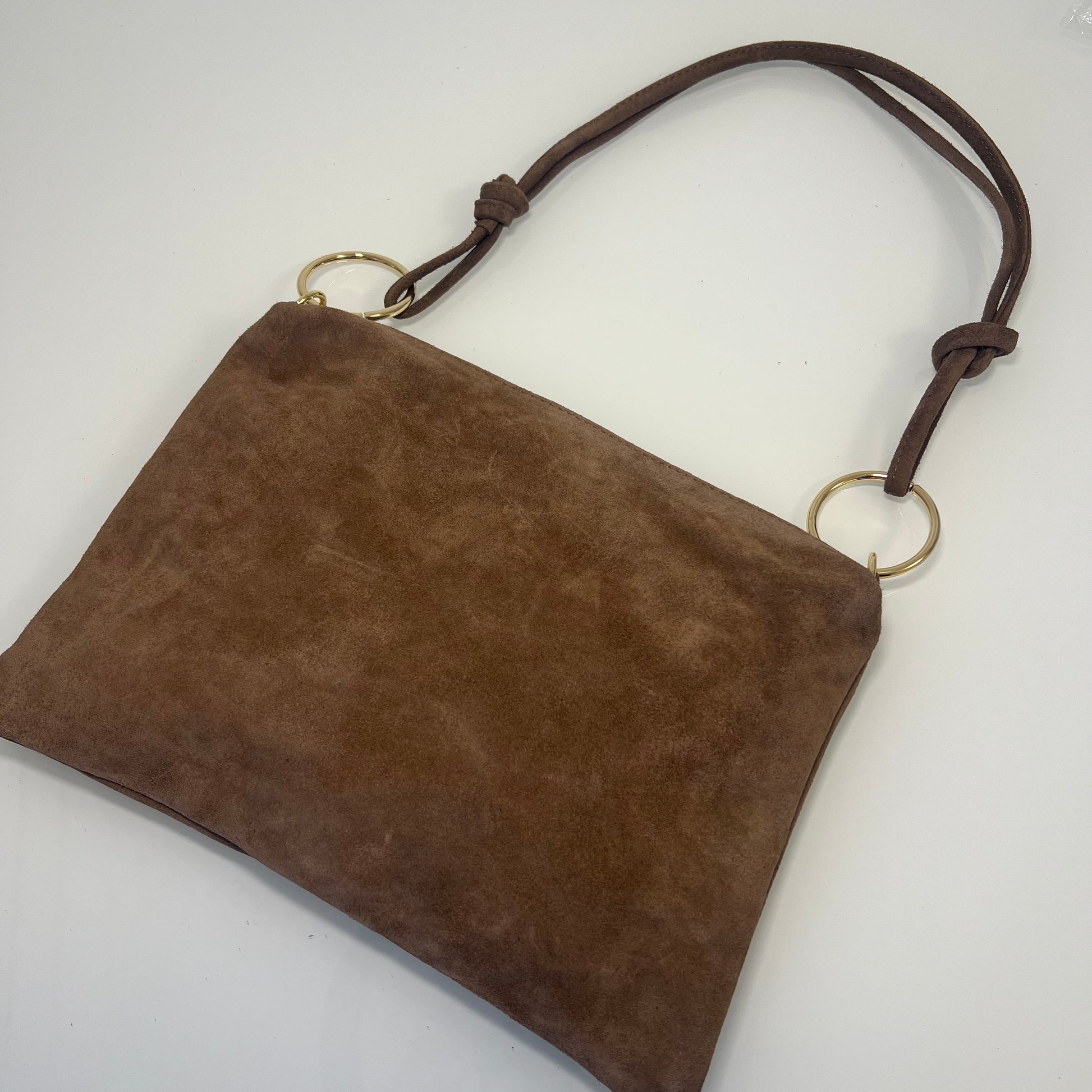 ✨ Borsa Pochette in Pelle Scamosciata con Anelli Dorati ✨