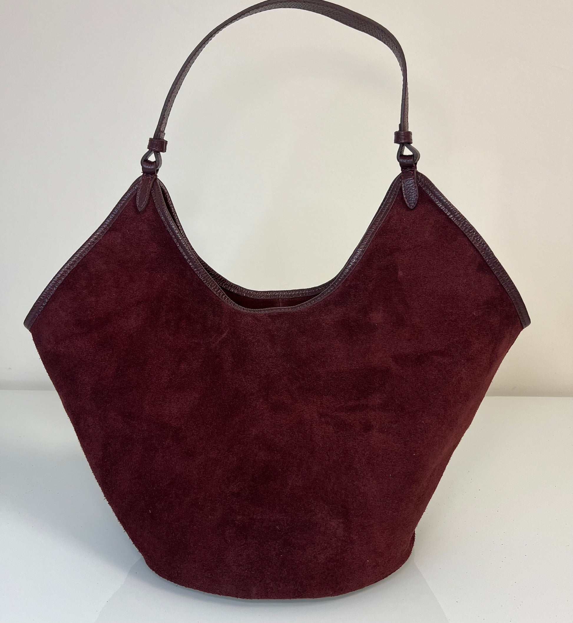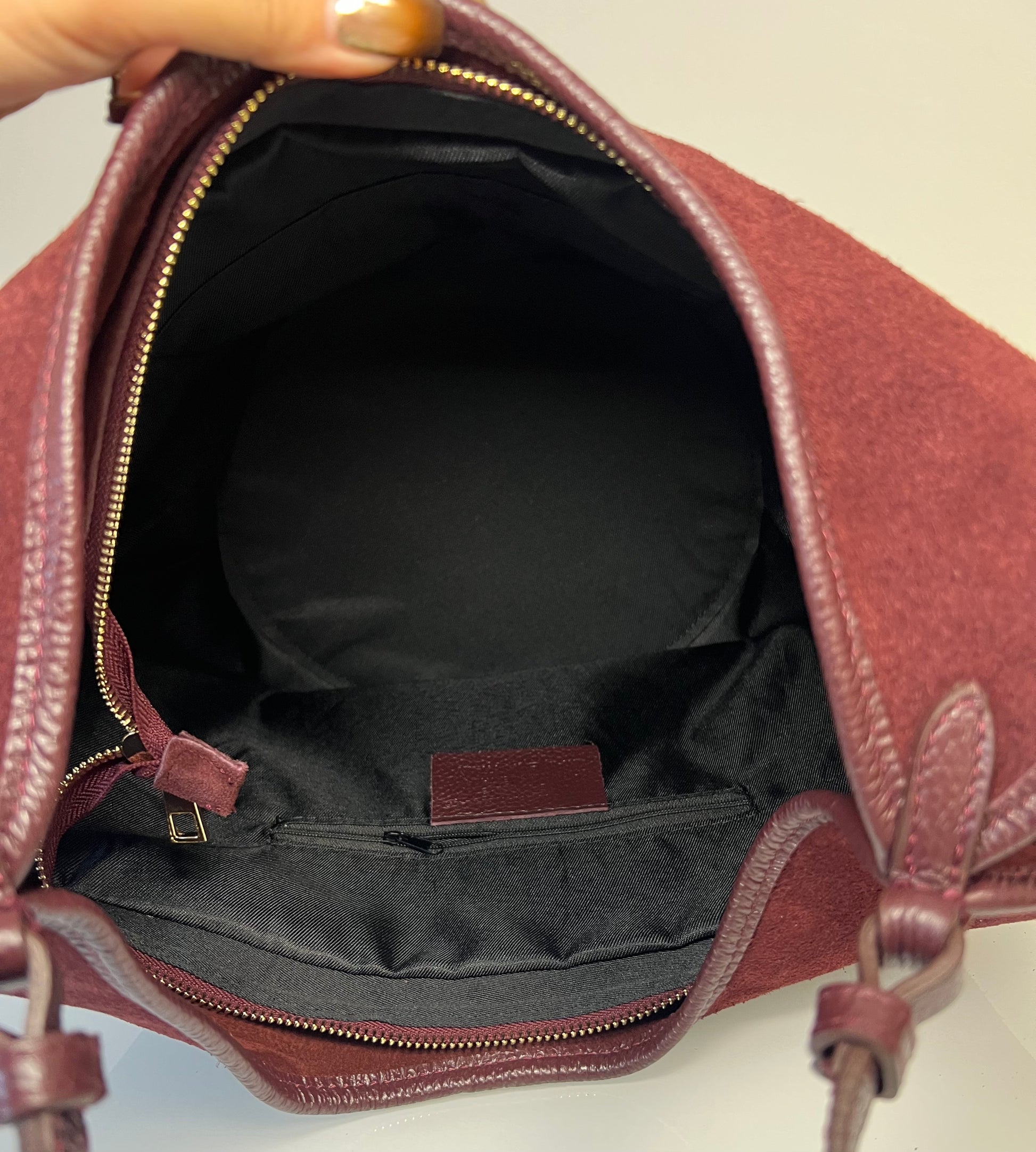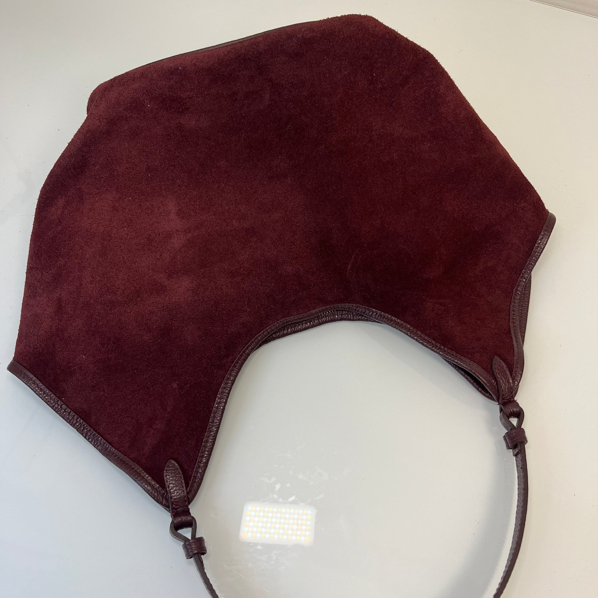 Dal design morbido e contemporaneo, questa borsa hobo in pelle scamosciata è l’alleata perfetta per un look chic e rilassato.