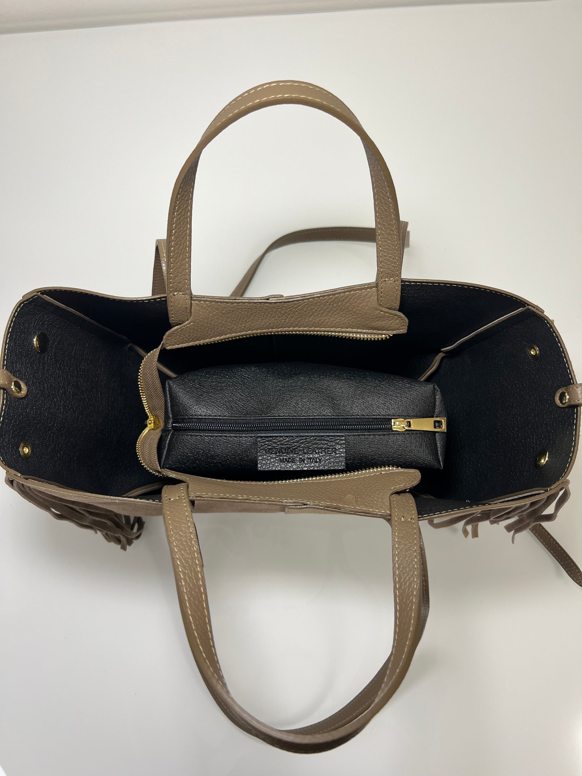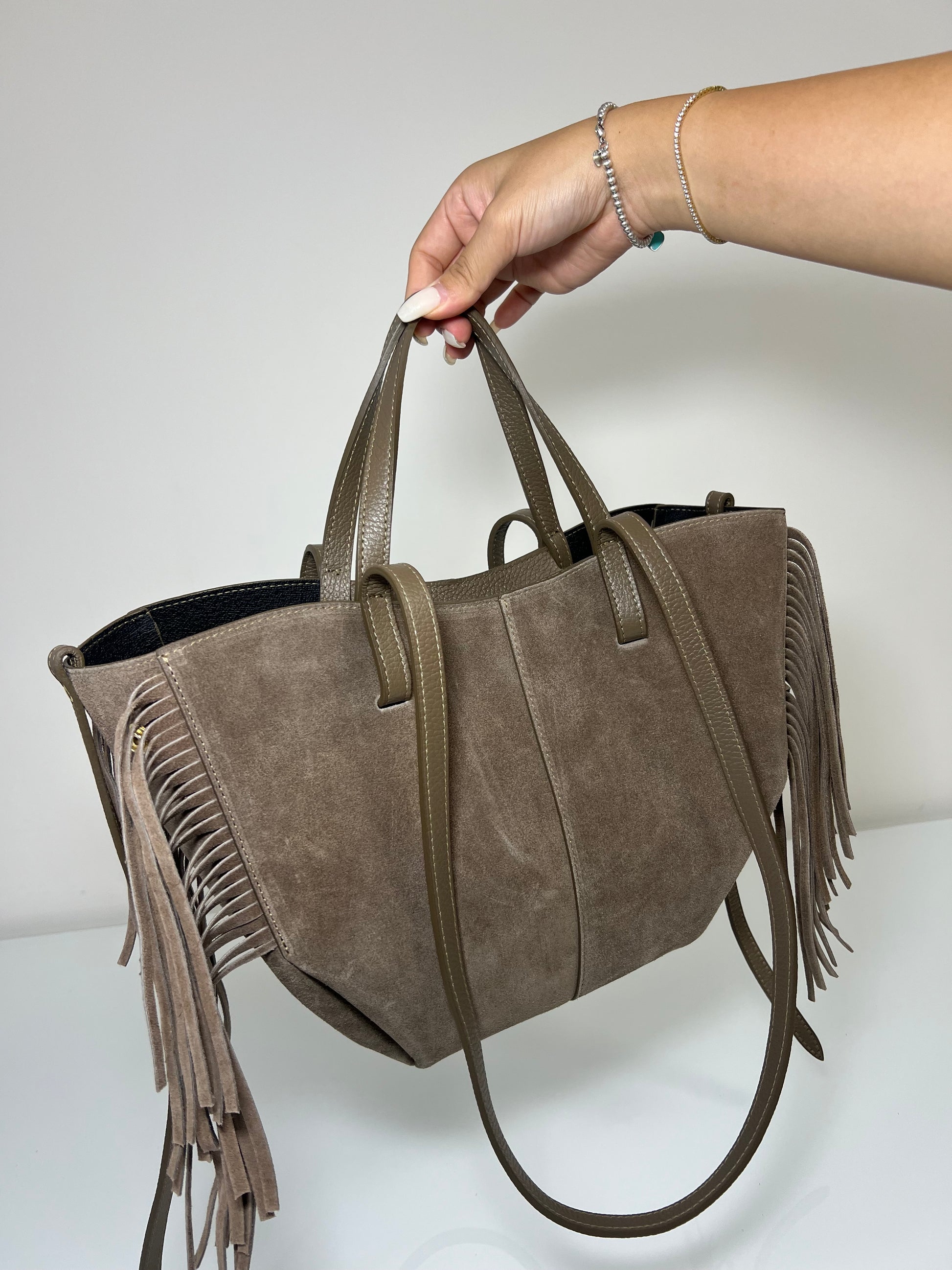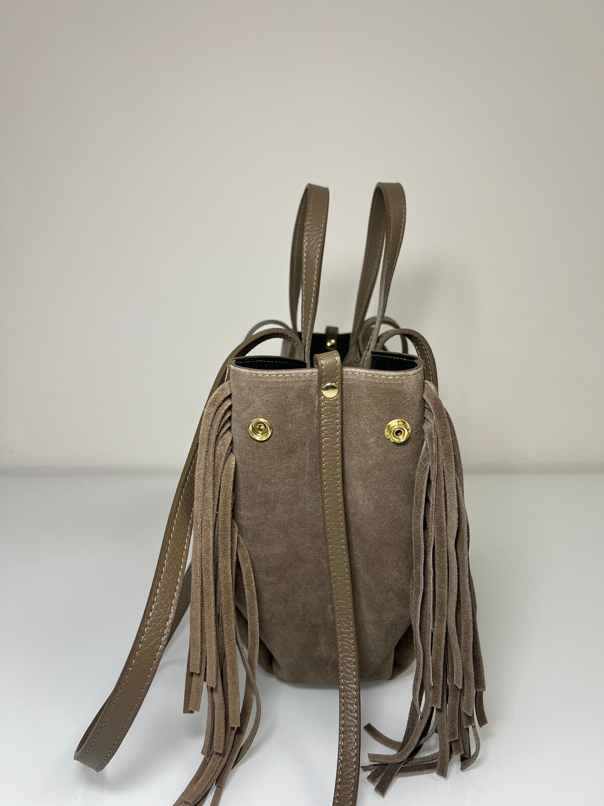 - Realizzata in vera pelle scampsciata di alta qualità e frange laterali