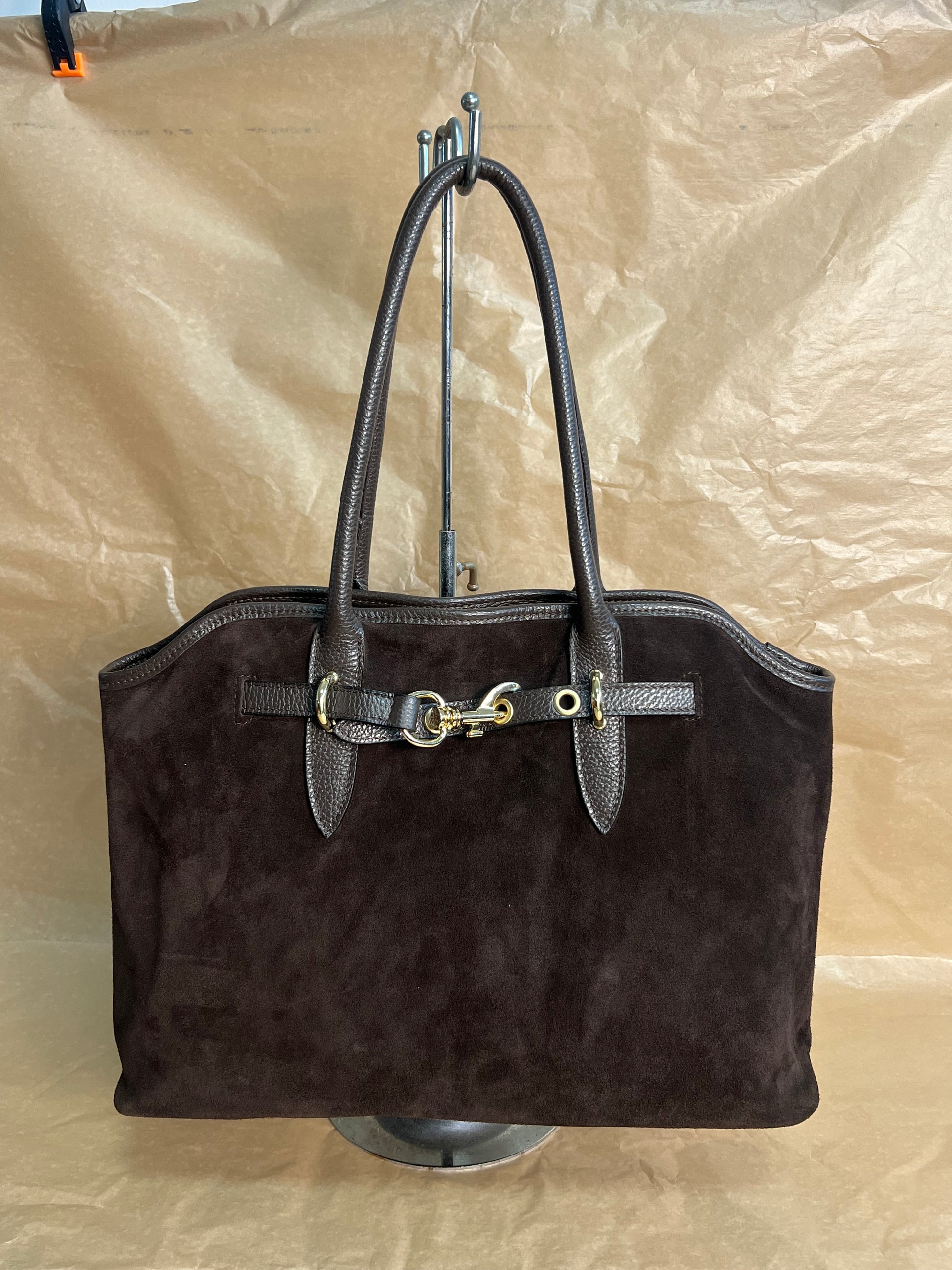 Borsa in Pelle Scamosciata con Accessorio oro